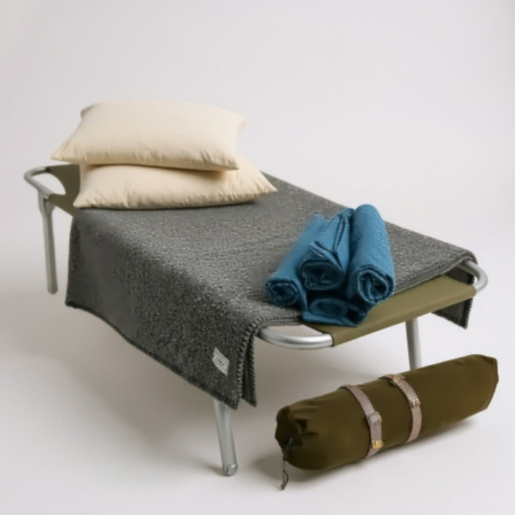 FOUND: Real Canadian wool blankets from the NESS: National Emergency Services used for the Canadian Emergency Health Services (EHS) from the late 1950s to the early 1960s. It sports a darker gray stripe and an “E.H.S.” and or DND "Dept National Defence" stamp. These are durable, warm, breathable, and naturally resistant to moisture — all crucial in emergency situations. These historically significant wool blankets have a unique connection to Canada's emergency services of the past.